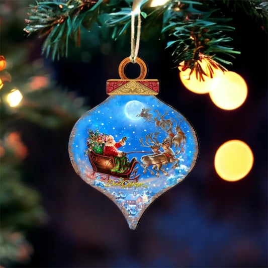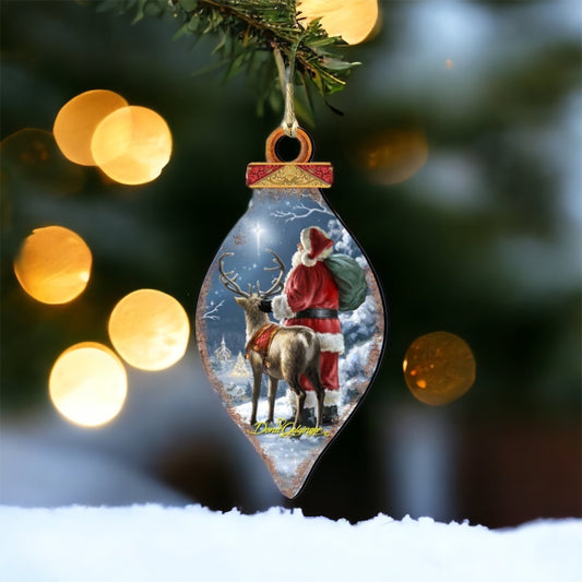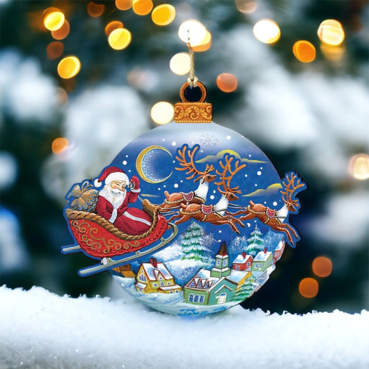 Santa-Magical-Flight Wood Ornament