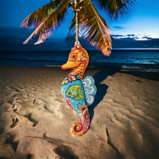 Seahorse Wood Christmas Ornament