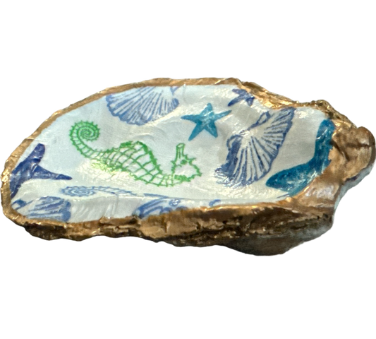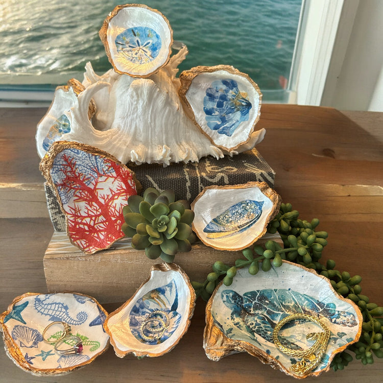 Our handmade oyster shell jewelry dishes are not only functional but also serve as beautiful decorative accents. Whether you're a lover of the sea or simply appreciate unique, artisanal craftsmanship, these trays make a perfect gift for yourself or someone special. Each piece is one-of-a-kind, reflecting the individual characteristics of the shell it was made from, making your jewelry dish a truly unique addition to your home décor.