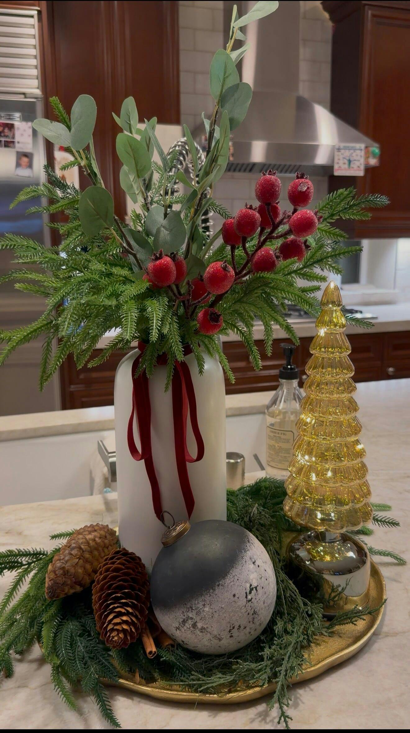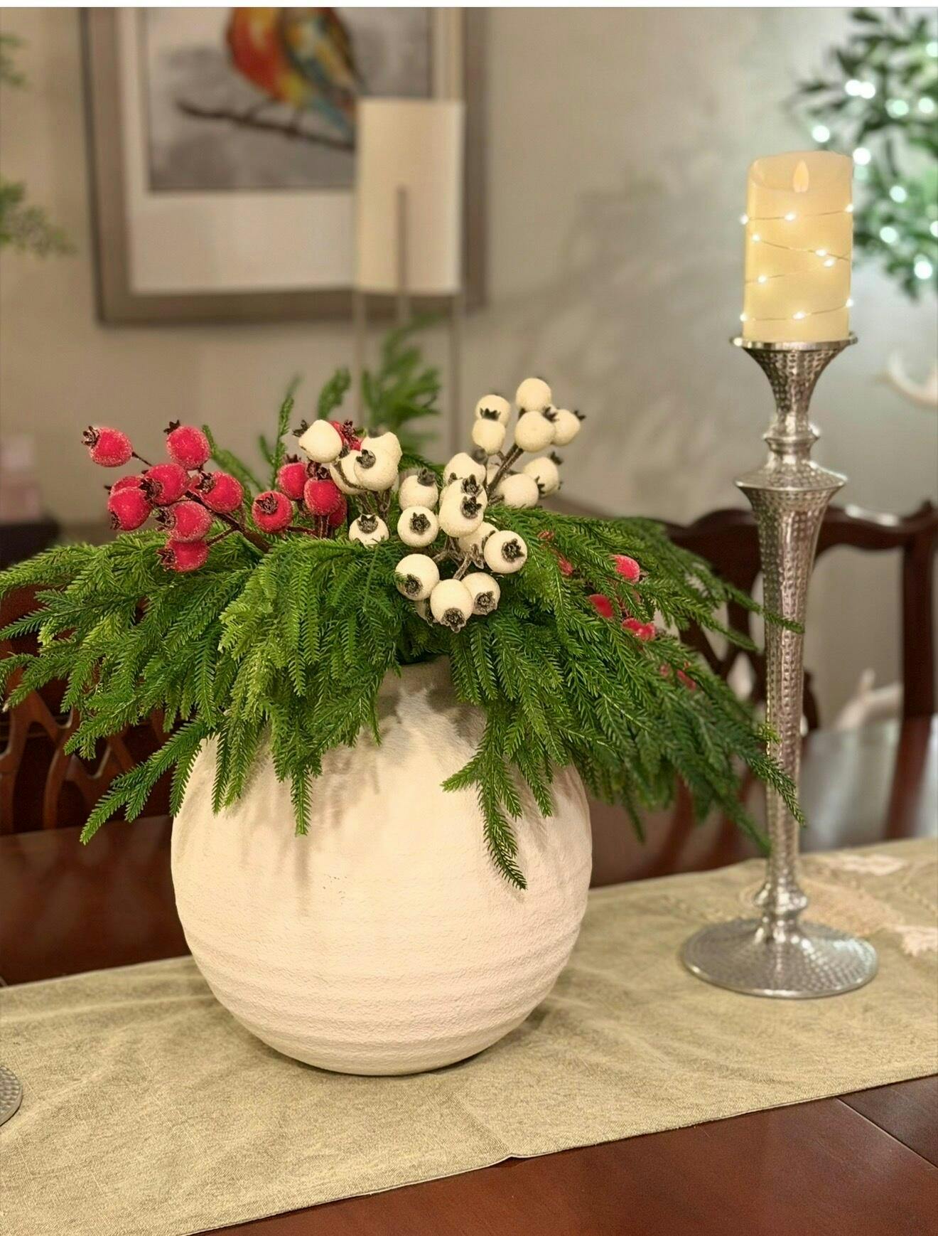 Bring a touch of winter magic to your holiday arrangements with our frosted beaded crabapple pick. Delicately crafted with frosted detailing and adorned with shimmering beads, this charming accent adds a hint of seasonal beauty to your Christmas tree, wreaths, centerpieces, and floral displays. Create a festive atmosphere with this elegant addition to your decor. Measures approximately 12".